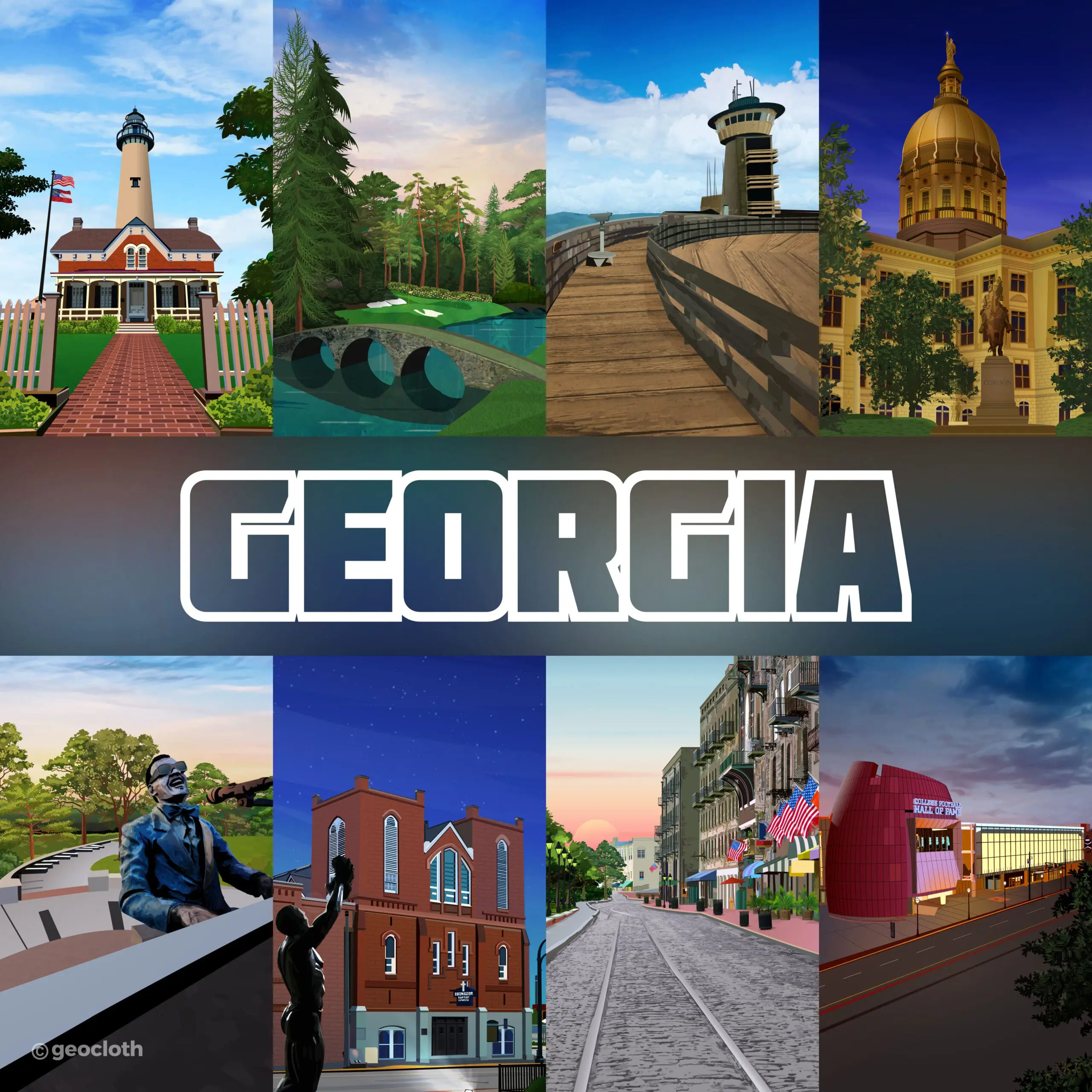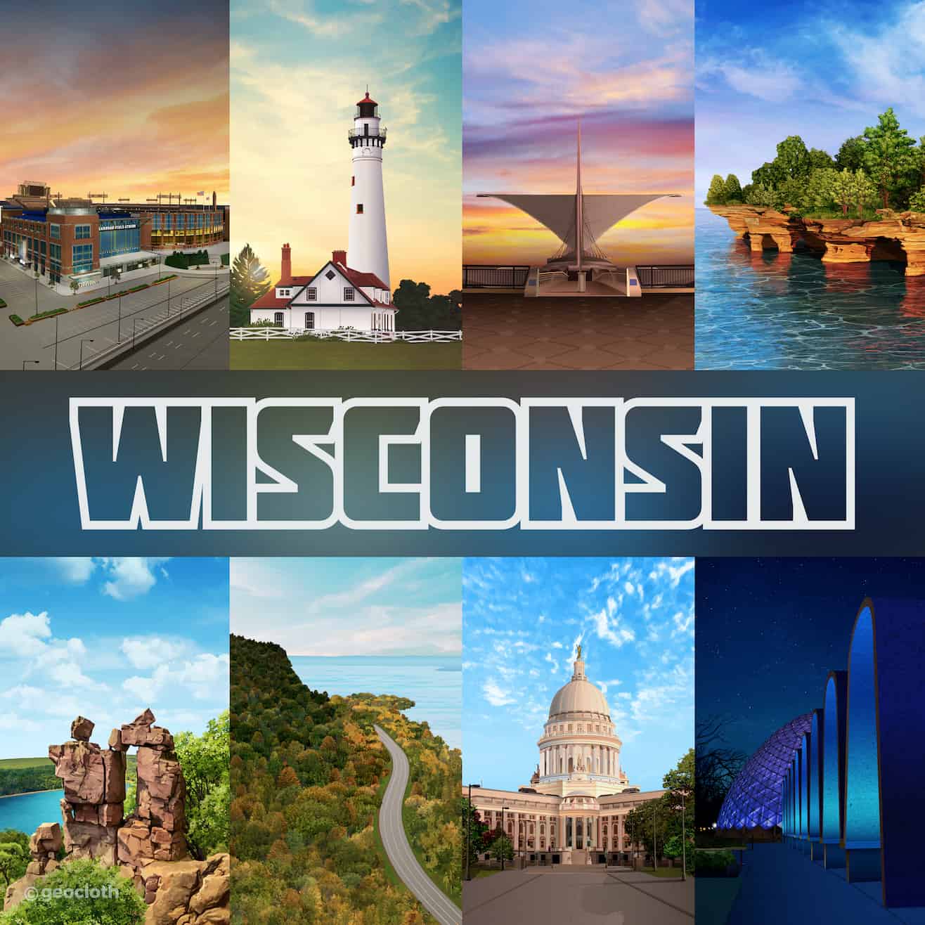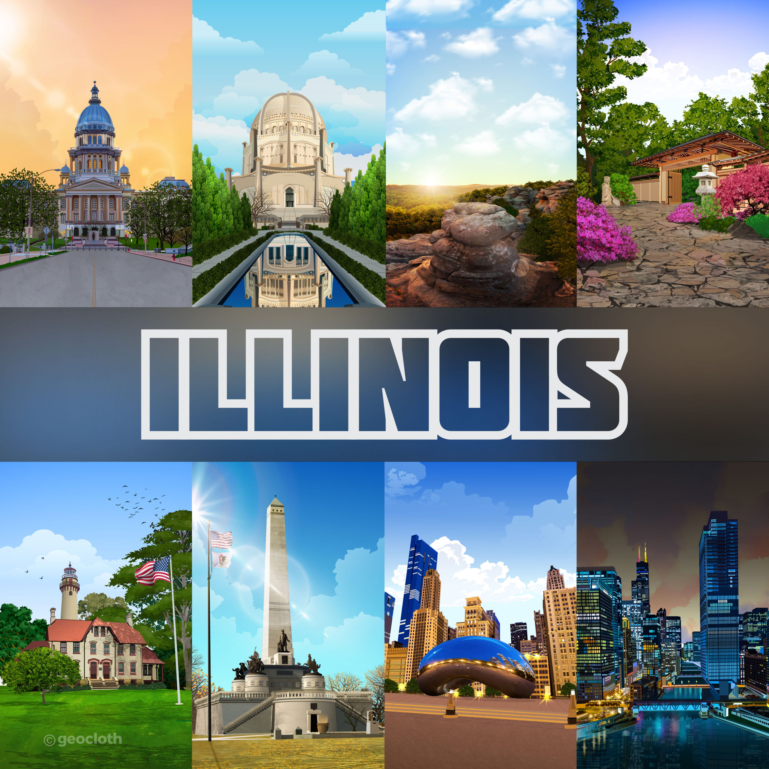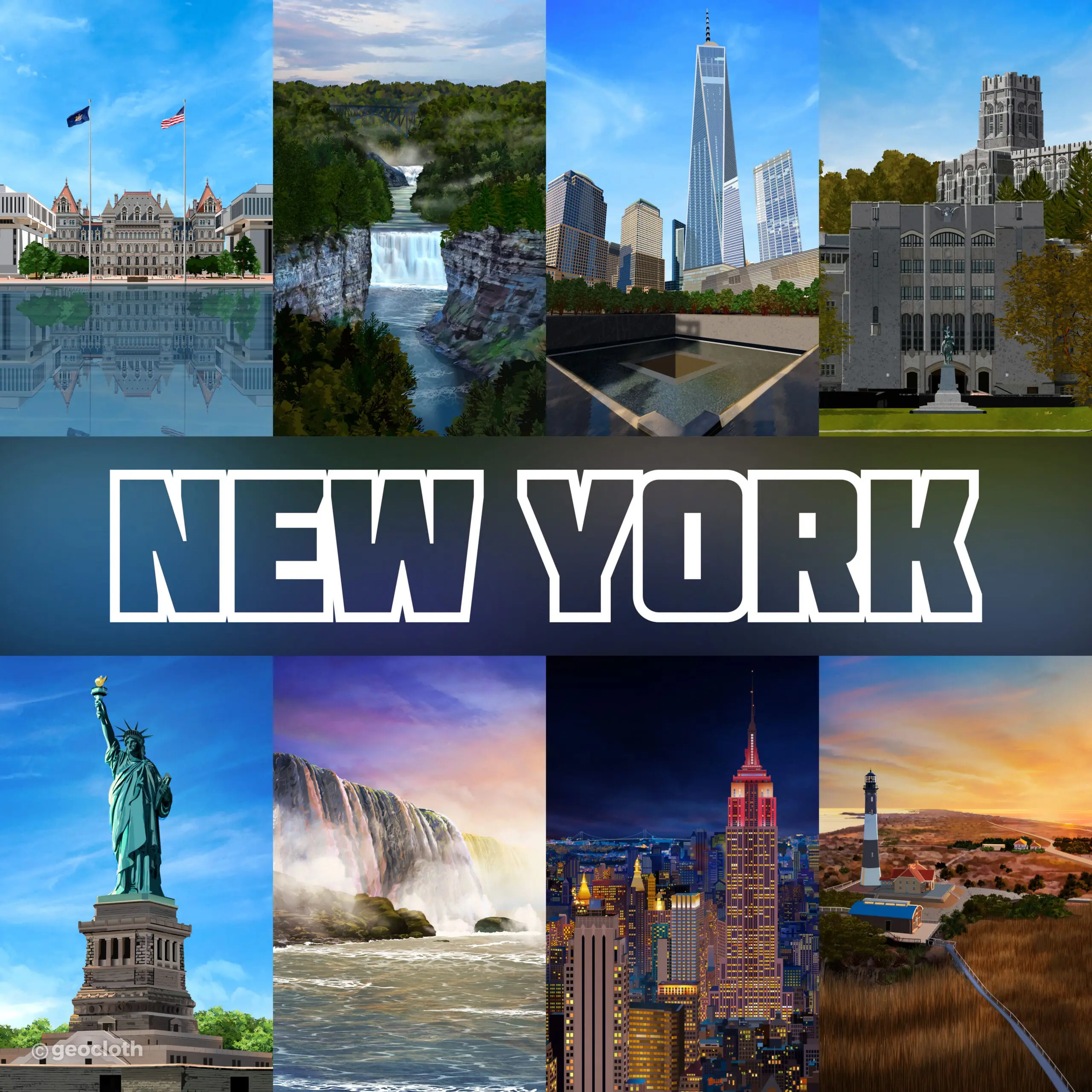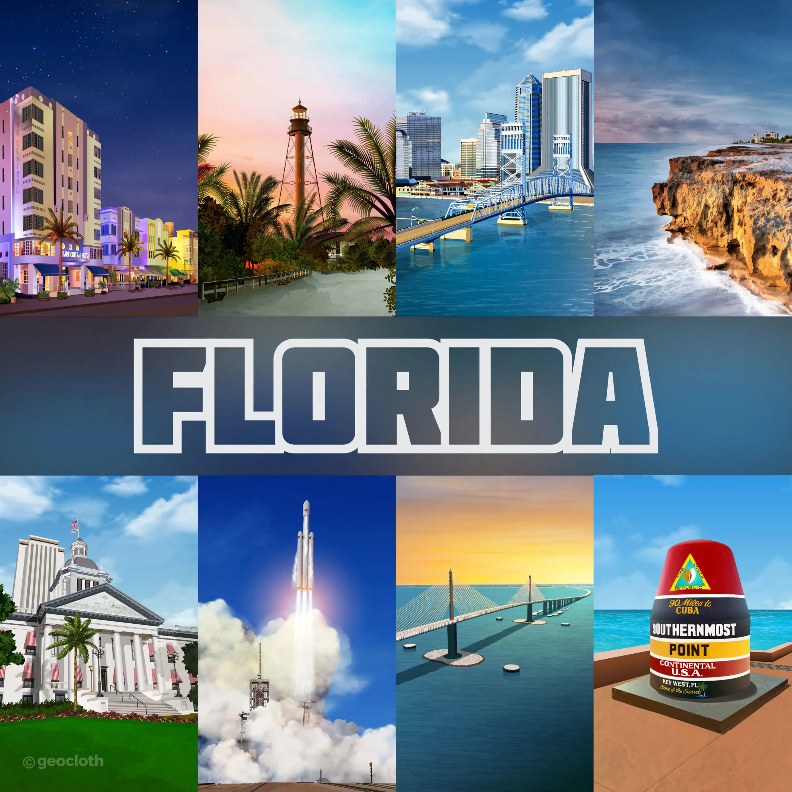GeoTee Cloth Illustrations GeoTee cloths are premium microfiber products featuring realistic illustrations of iconic locations worldwide. From sketching to the final touch-up, each design is carefully crafted to highlight unique landmarks and landscapes, like Florida’s coastlines and New York’s skyline etc.