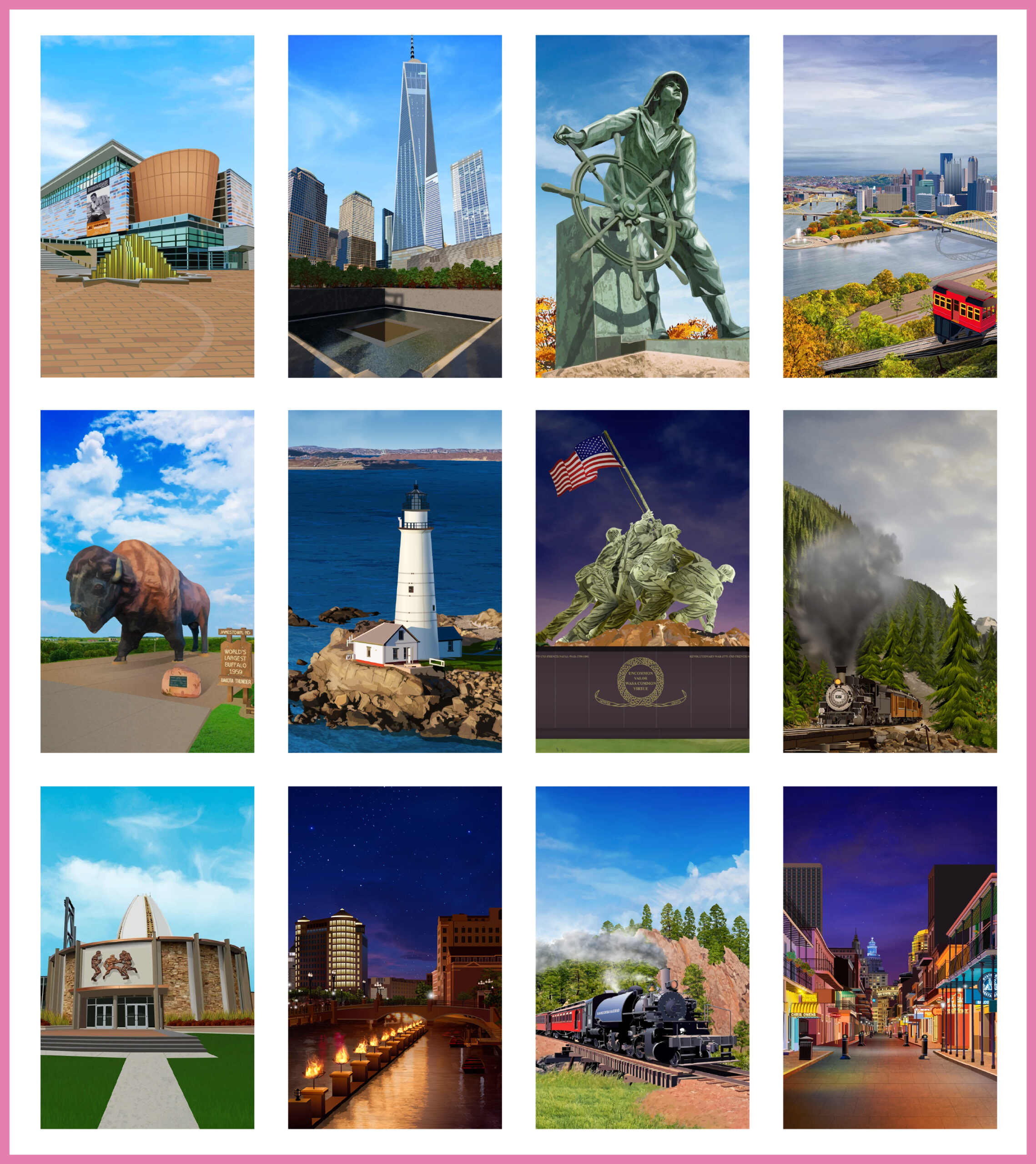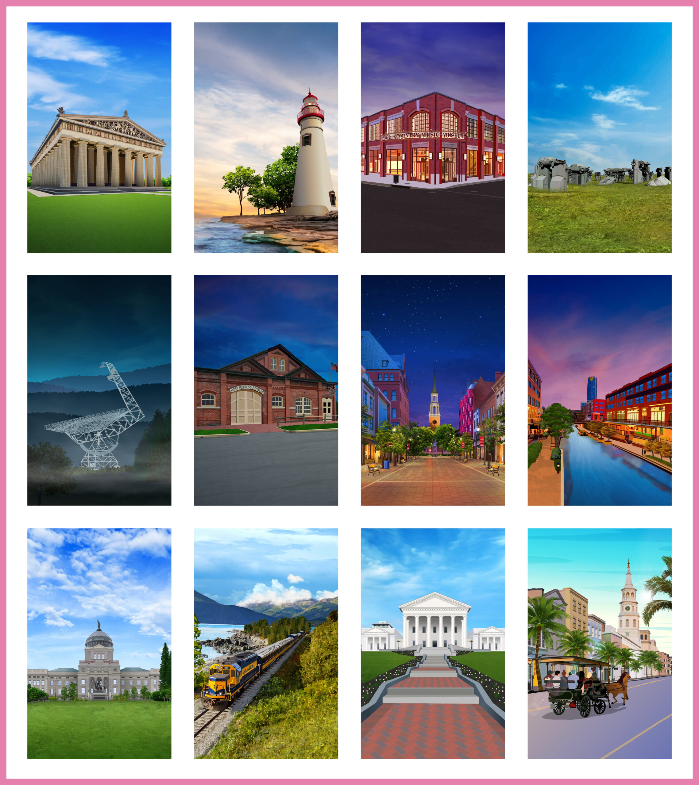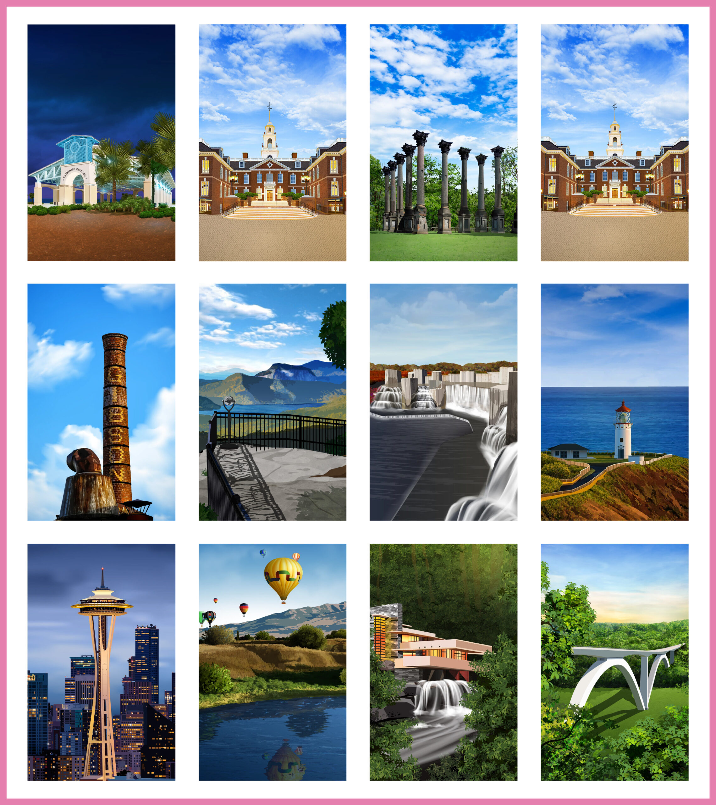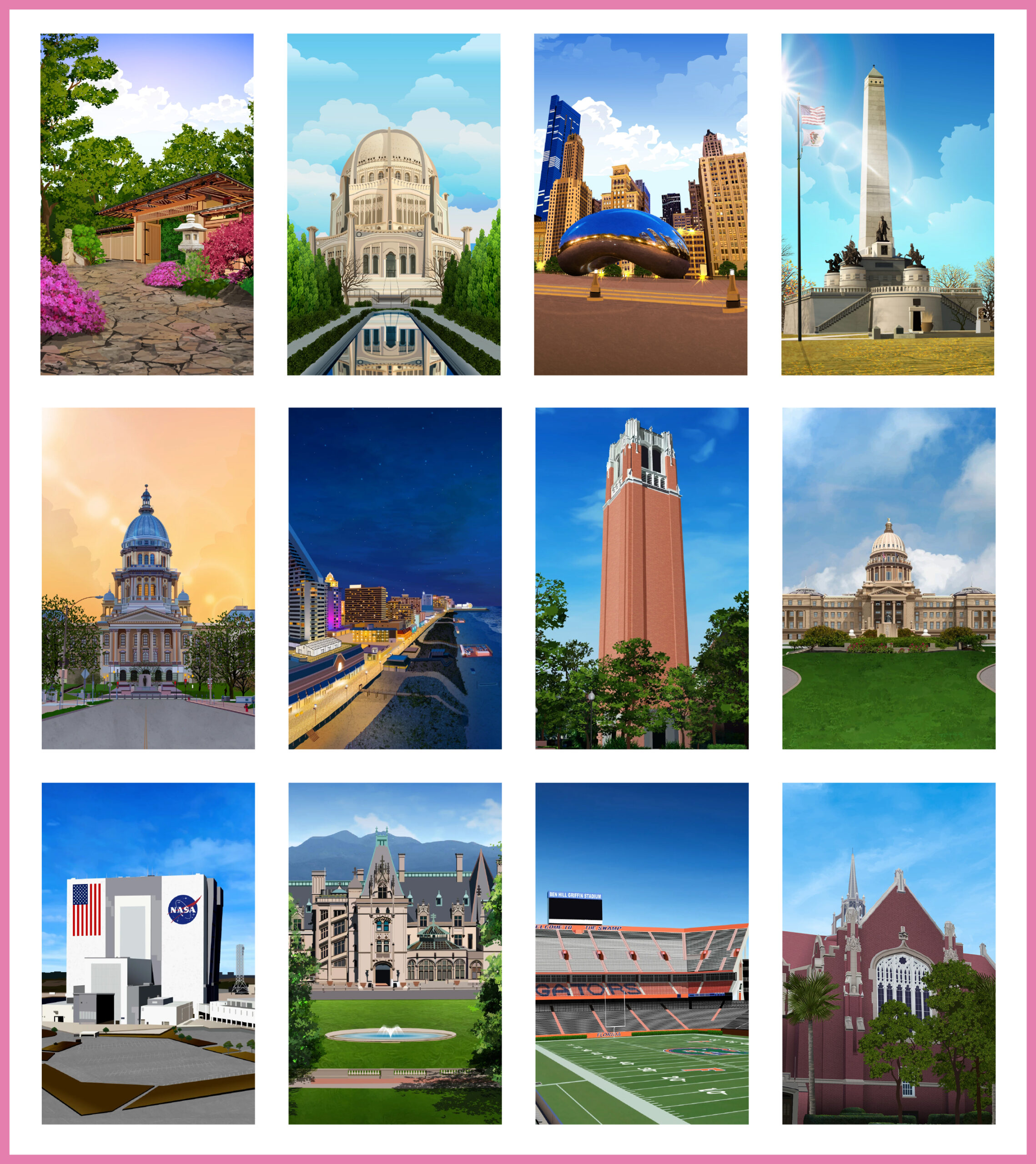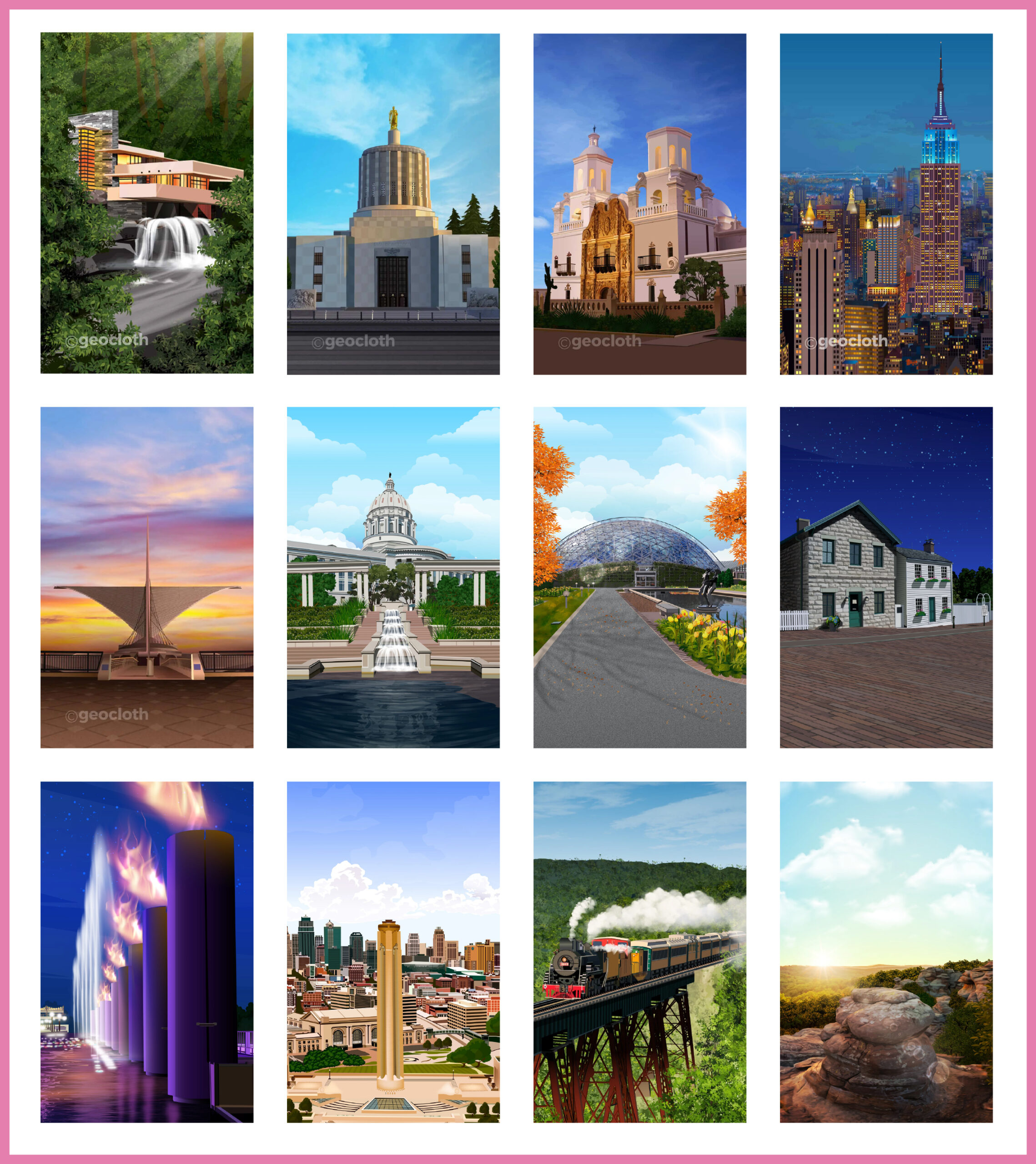 GeoTee Cloth Illustrations GeoTee cloths are premium microfiber products featuring realistic illustrations of iconic locations worldwide. From sketching to the final touch-up, each design is carefully crafted to highlight unique landmarks and landscapes, like Florida’s coastlines and New York’s skyline etc.